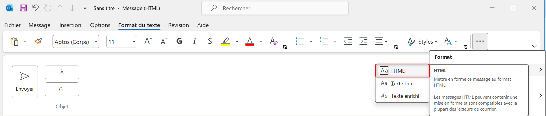 2. Sélectionner le format HTML.